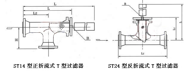 ST24型反折流式T型過(guò)濾器連接尺寸