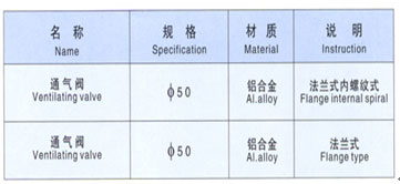 通氣閥是油罐車用于呼吸的專用設(shè)備。有法蘭聯(lián)接和螺紋聯(lián)接兩種。 主要技術(shù)參數(shù)如表。