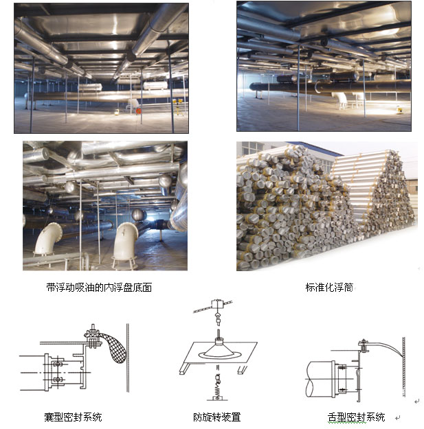 內(nèi)浮盤工作原理是依靠液面提供給浮盤浮子浮力。浮子帶動(dòng)整個(gè)浮盤上下運(yùn)動(dòng)。浮盤與罐壁采用密封帶進(jìn)行密封。我公司生產(chǎn)的內(nèi)浮盤根據(jù)實(shí)際制造經(jīng)驗(yàn)和用戶使用情況,經(jīng)過(guò)反復(fù)征求意見(jiàn),不斷改進(jìn)更新,具有較強(qiáng)的實(shí)用性和使用性。具有使用年限久遠(yuǎn),基本無(wú)維修的特點(diǎn)。